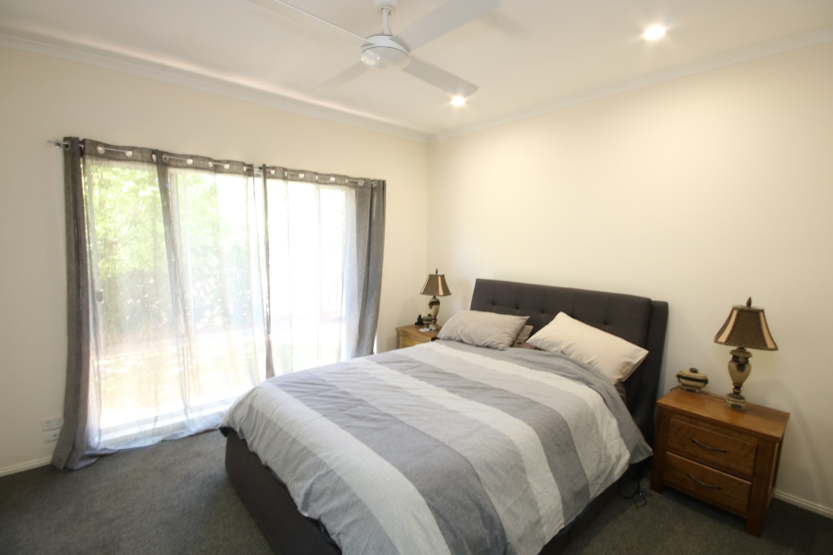 • 4 carpeted bedrooms, 3 with built-in robes, ceiling fans, blinds and sheers, fourth bedroom currently used as a home office & main bedroom includes walk-in robe and ensuite with shower, vanity and toilet.