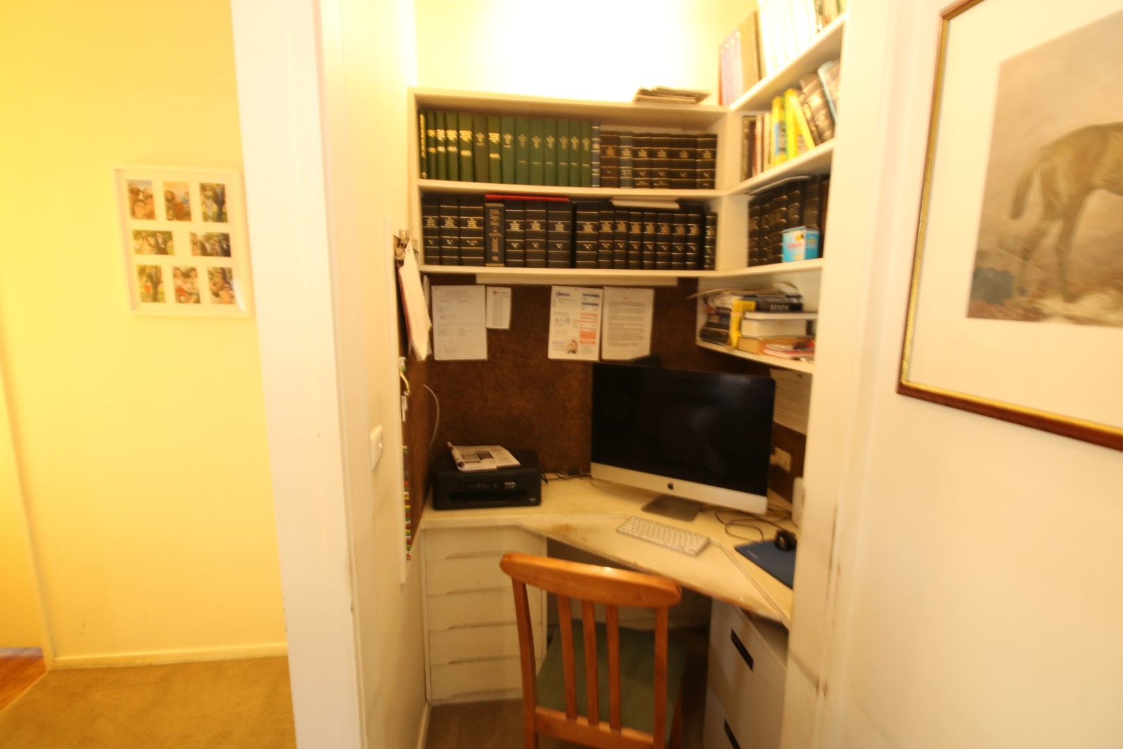 The four-bedroom home features a practical and welcoming layout, including a kitchen, dining area, lounge room with a cosy wood fire and a built-in study nook, ideal for office work or home administration, central hallway offering built-in storage, bathroom, a separate toilet and laundry. Year-round comfort is ensured with two reverse-cycle split systems, while the wood fire adds warmth and character to the main living space.