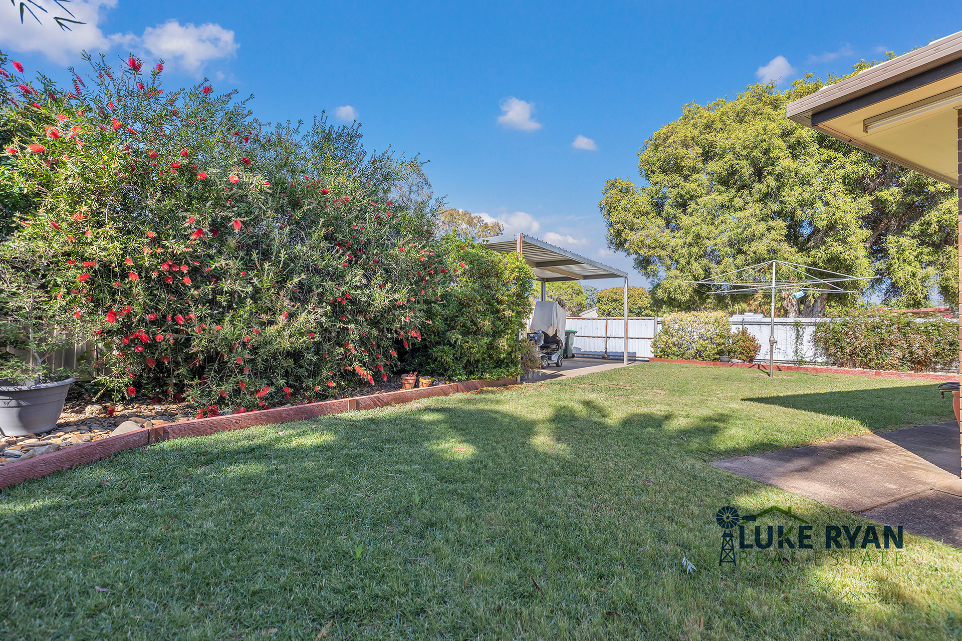 Outside, the property continues to impress with a fully concreted double carport, and a second driveway providing access through double gates to an undercover caravan carport – ideal for those needing extra vehicle space. Accessibility features include ramp and railings at the front entrance. The fernery, water tank (connected to the house), and garden shed with concrete floor and shelving all add to the home’s functionality. The established gardens and lawns are lovely, low-maintenance, neat and ready to enjoy.