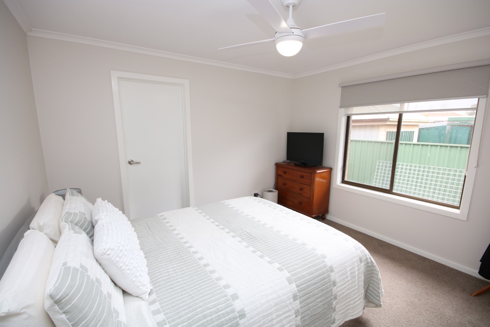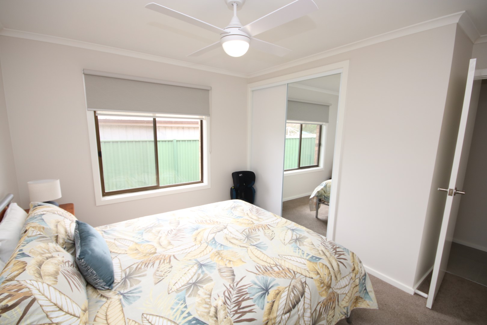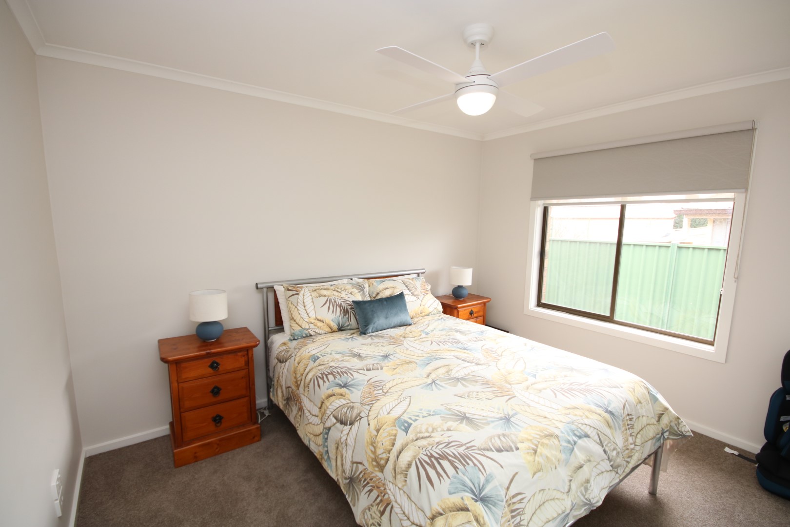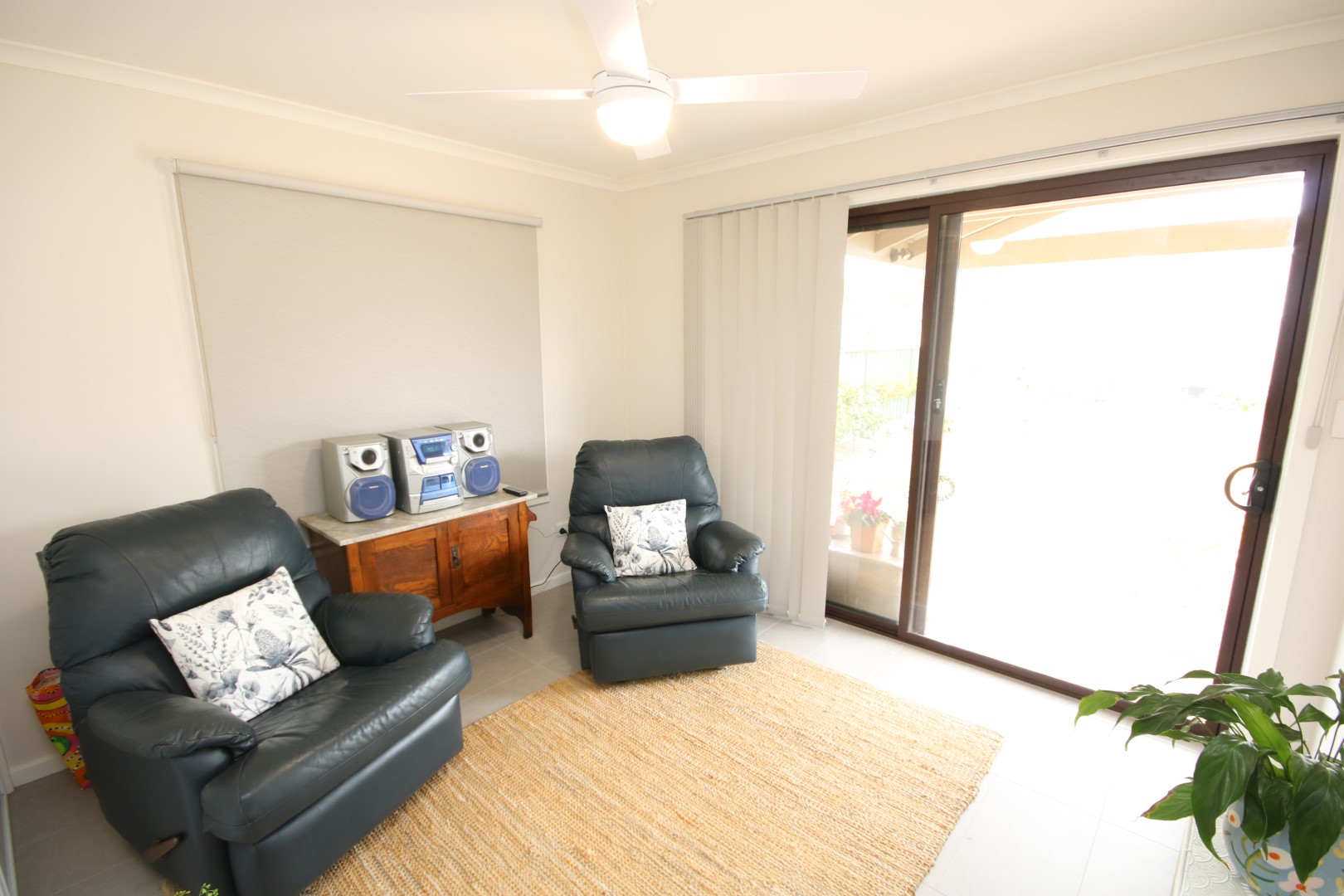 Bedroom 2 & 3: Both are spacious and include built-in robes, ceiling fans, and double blinds. One bedroom has carpet, while the other offers tiled flooring and opens directly onto a timber deck-perfect for enjoying the tranquil garden outlook with a morning coffee.