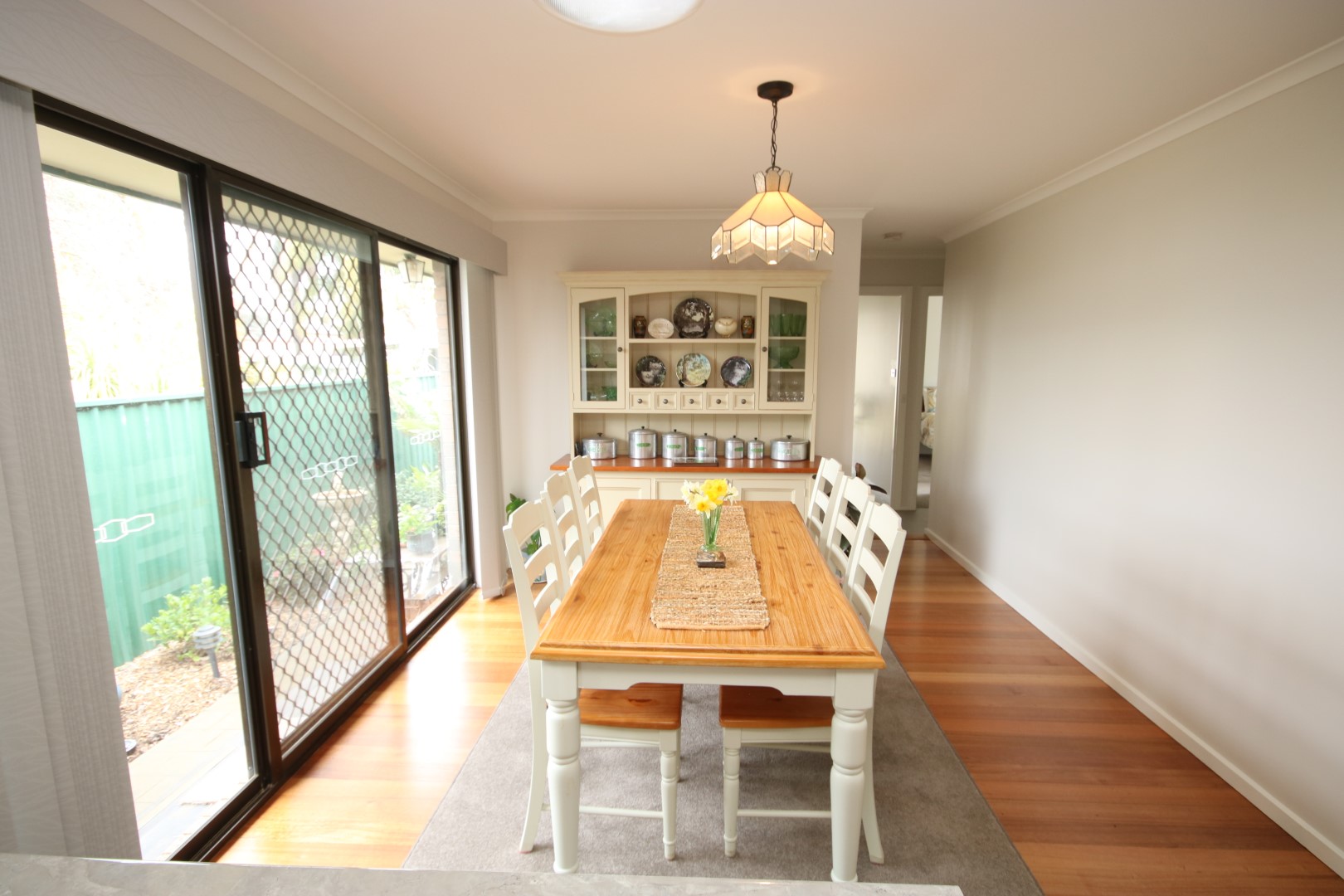 • Spacious & Stylish Living: Step inside to discover stunning timber flooring that flow through to the kitchen and dining areas. This light-filled space is enhanced by two skylights and large sliding glass doors that open out to the side entrance of the home, creating seamless indoor-outdoor living.