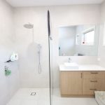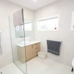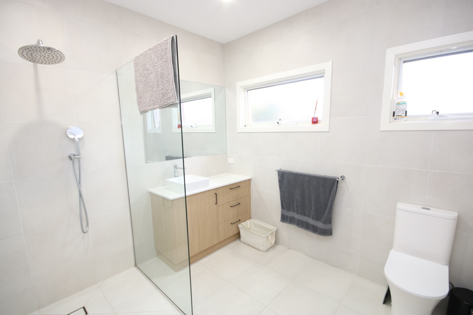 • Contemporary vanity offering excellent storage, plus dual high windows for natural light