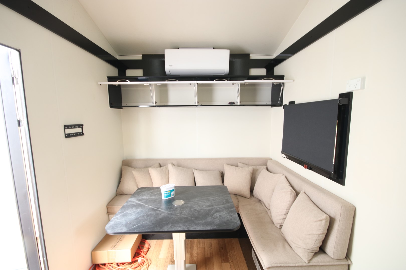 • Comfortable Living Area: TV sitting area with table, modular lounge suite, and a reverse-cycle split system for year-round climate control.
