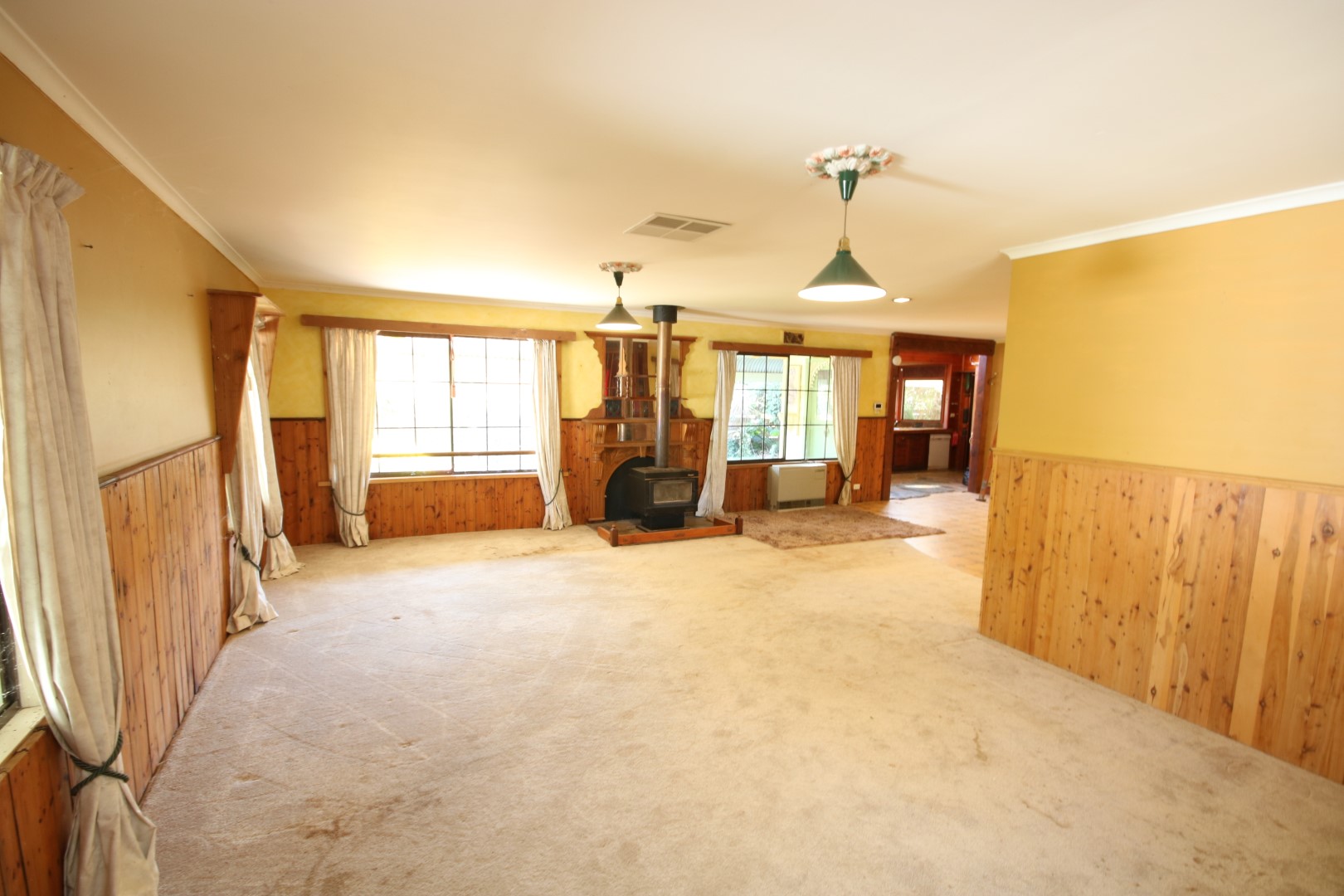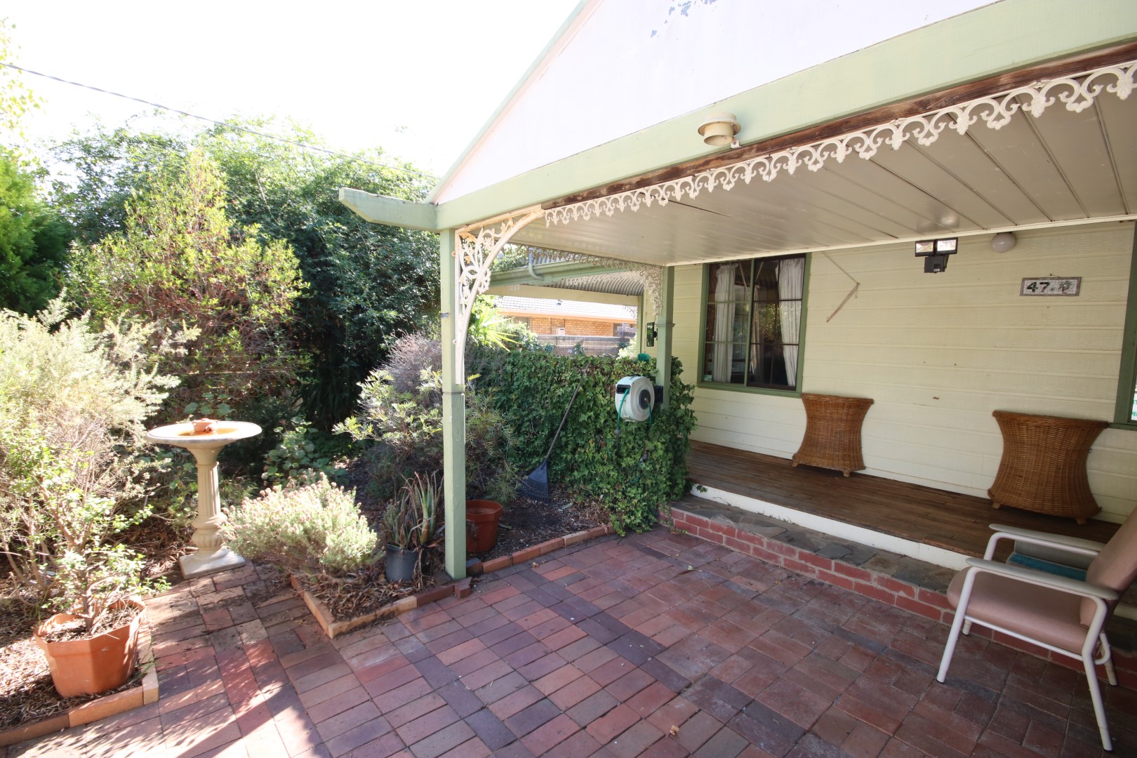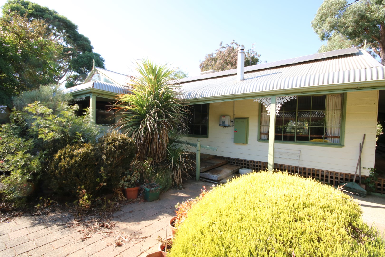 This 5-bedroom country-style home sits on a generous block with 2 titles being approx. 950m2 each or approx.1900m² block in total. Established gardens and mature trees throughout. The hardy plank exterior features a classic bullnose verandah and energy-efficient solar panels. Inside, you’ll find a large dining and lounge area warmed by a wood heater, while the country kitchen offers slate flooring, timber cabinetry, and a practical walk-in pantry. The master bedroom is particularly spacious, featuring a walk-in wardrobe and ensuite bathroom with spa bath. Four additional bedrooms provide ample accommodation for family or guests, most equipped with ceiling fans for comfort. A second family bathroom services the home with its timber vanity, toilet and shower.