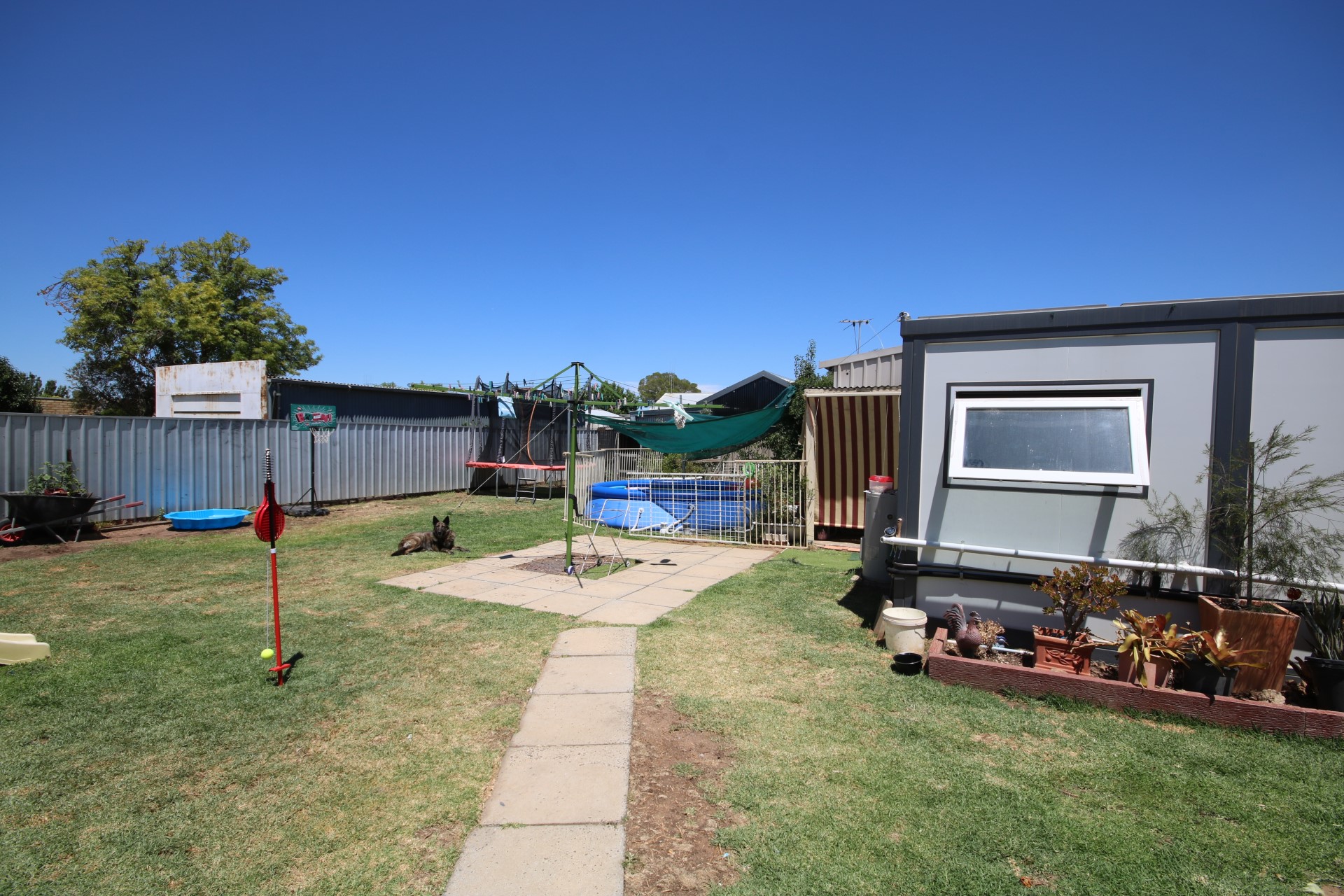 Outdoors, the property truly shines. Enjoy entertaining in the paved undercover area complete with a red gum bar, while electric roller shutters on external windows provide added security and comfort. The detached shed has been cleverly converted into a fully insulated sleepout bungalow, featuring carpet, a box reverse cycle air conditioner and a basic kitchenette with sink, bench and cupboard. A nearby self-contained portable unit offers extra versatility and space with its own laundry, bathroom, and kitchen facilities.