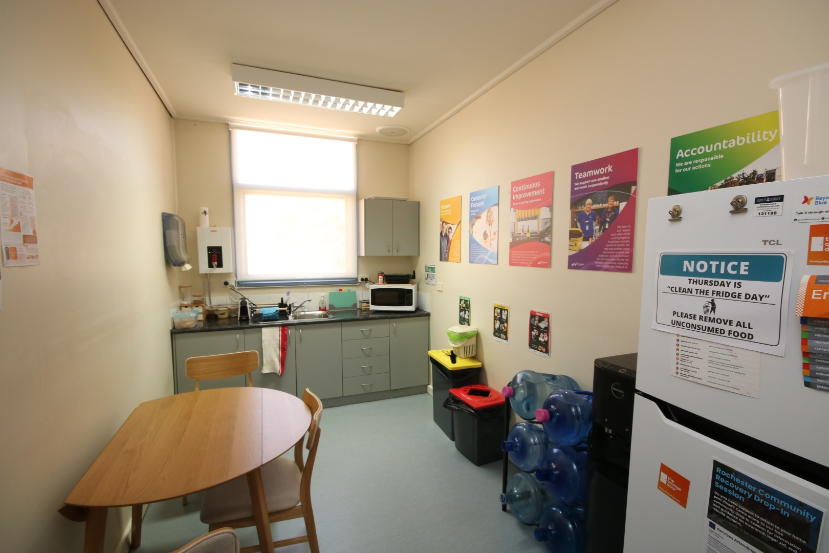 The lunch room features a kitchenette, ensuring convenience and comfort for all employees during meal breaks.
