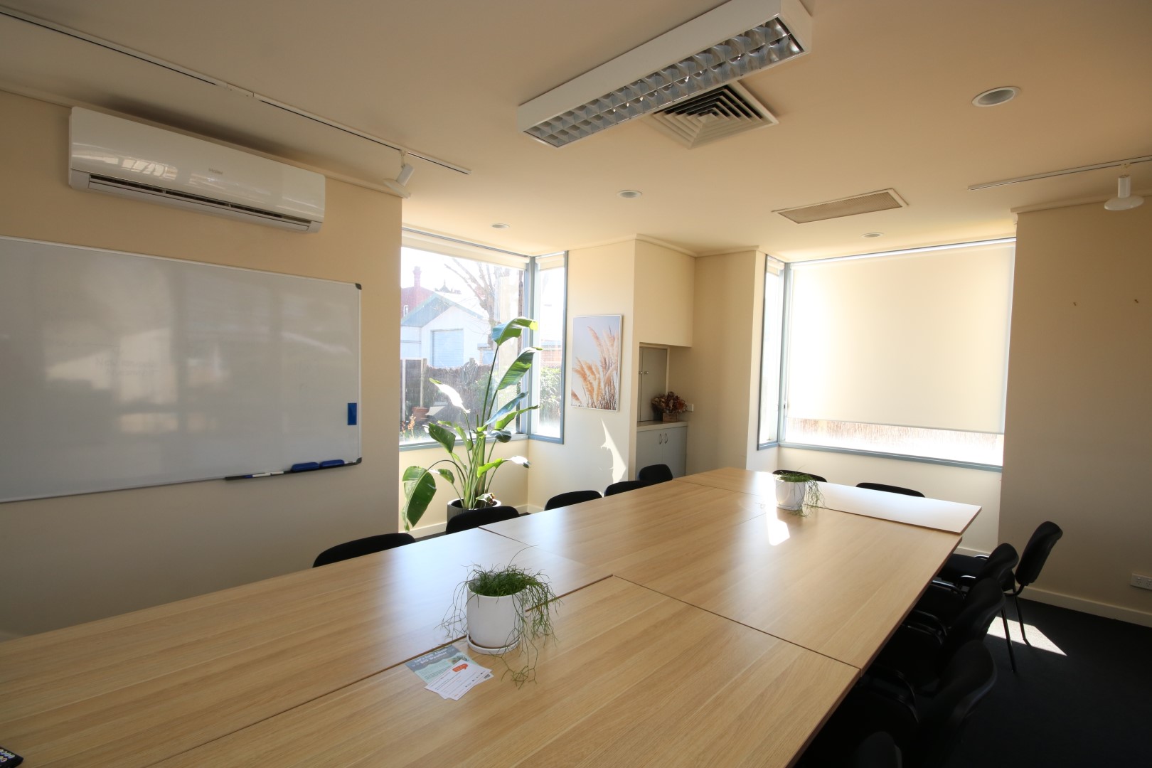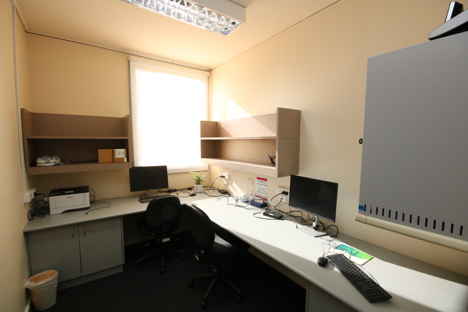 Office 1 is a large room designed to accommodate up to 4 people. It includes a split system to ensure a comfortable working environment year-round.