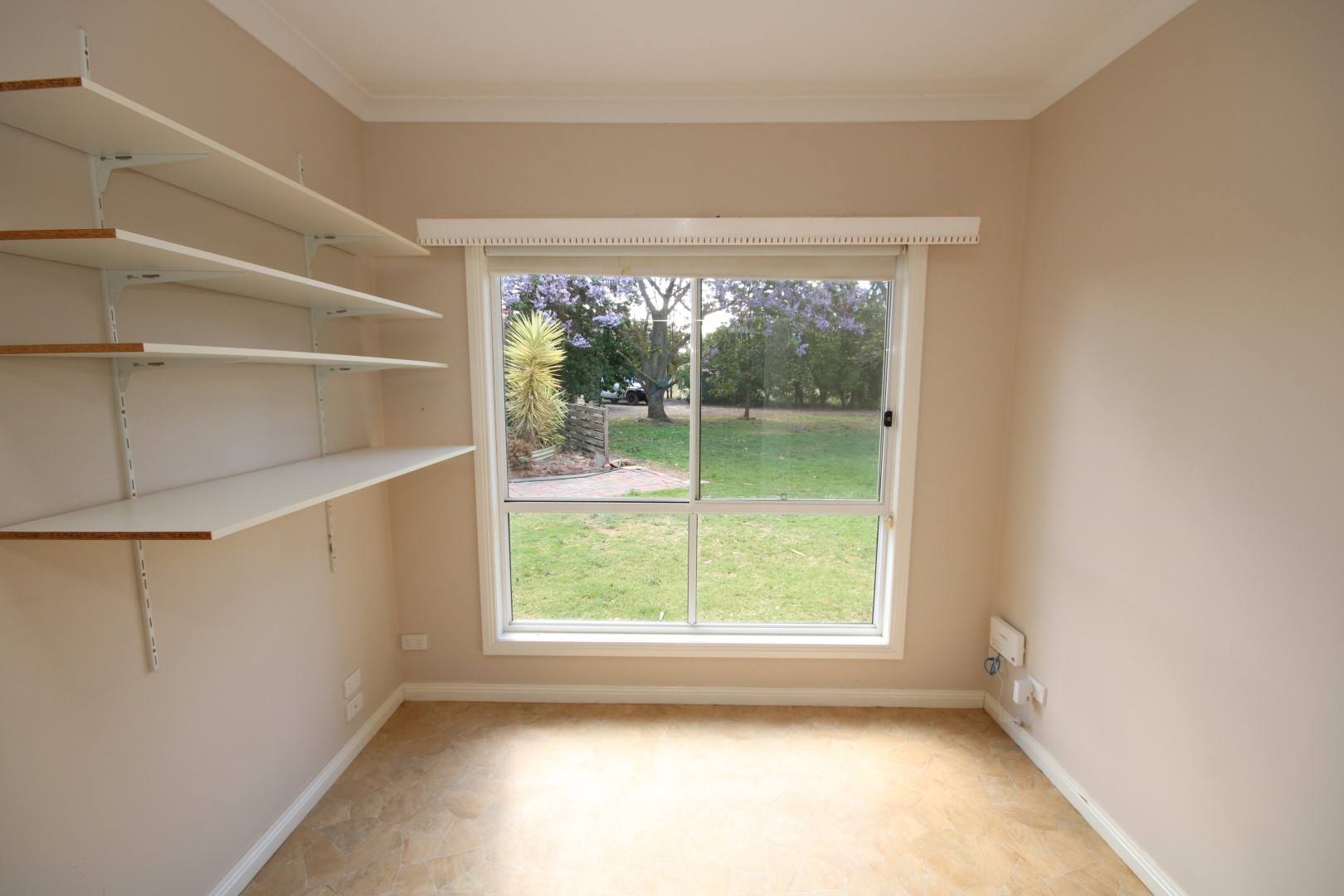 • Study – practical with lino flooring, shelving, and blinds, could become a fourth bedroom if required.