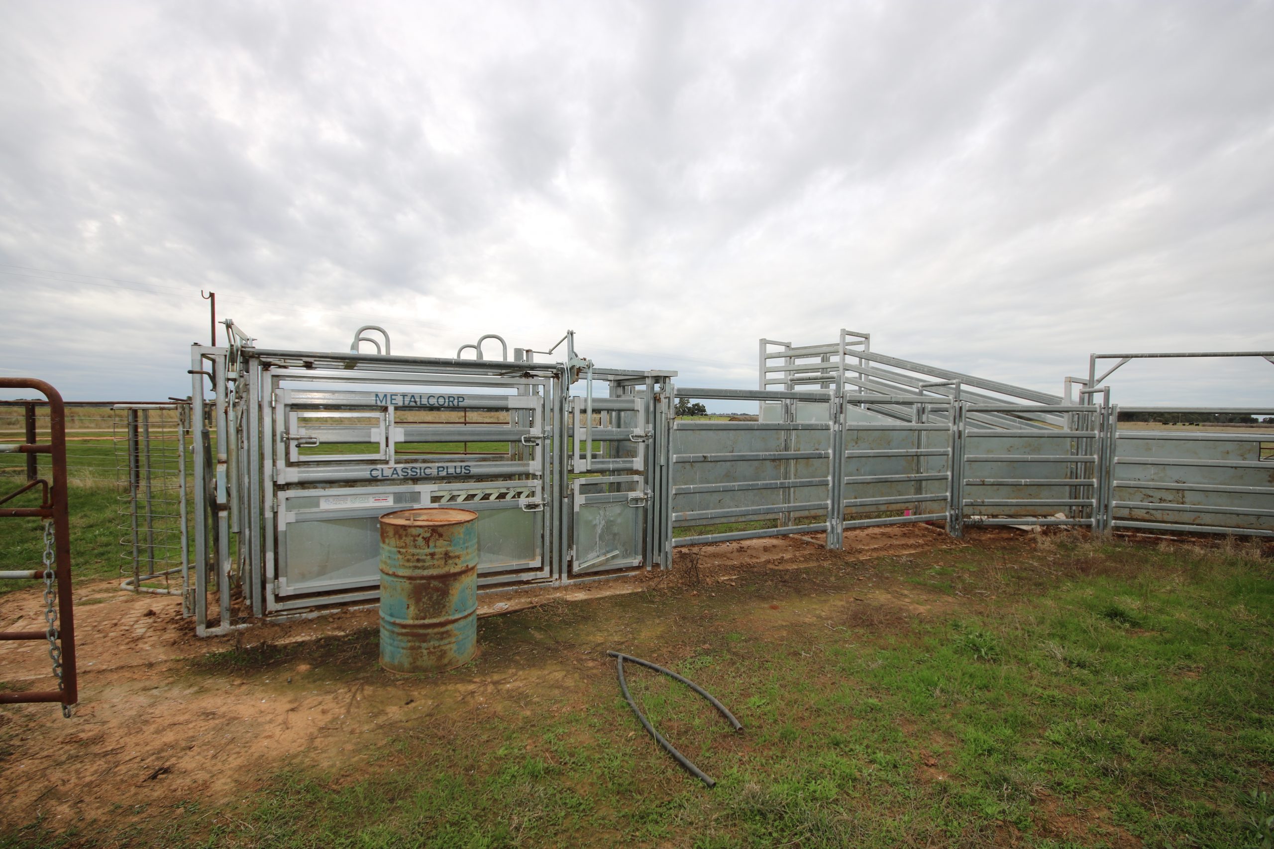 Quality cattle yards with concreted race, crush, loading ramp, and large holding pens.